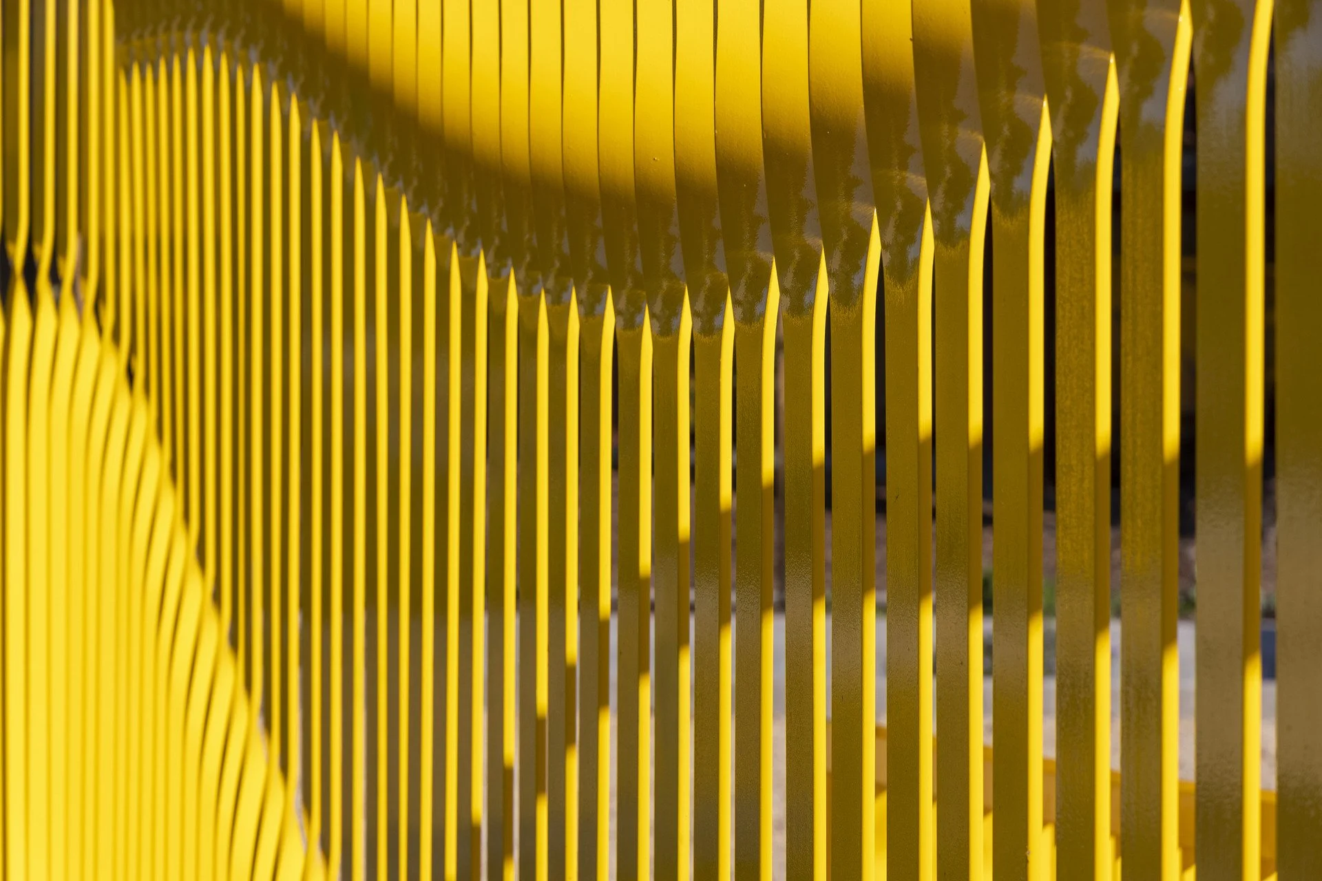 A custom steel backdrop for the stage uses simple metal-craft artfully arranged to celebrate the Fremont Hills.