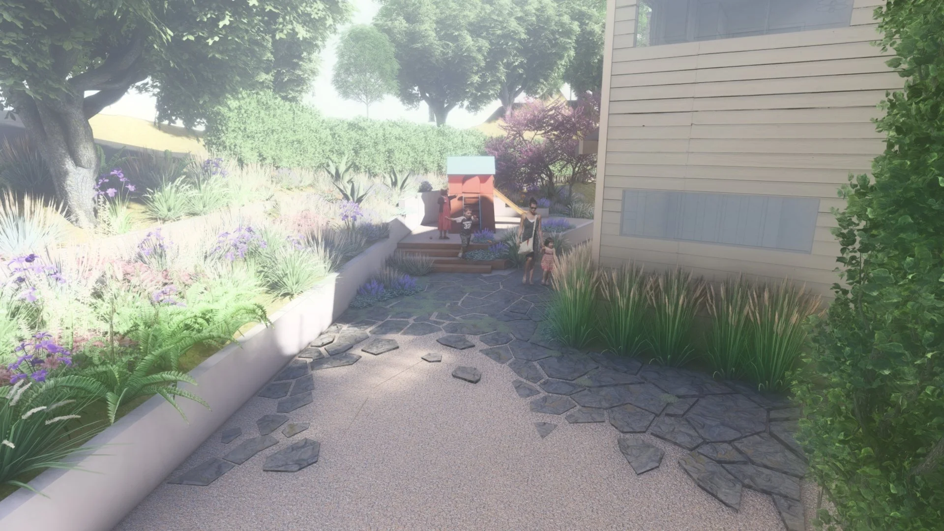 The design features native plantings and locally sourced stone. Large field stones excavated during construction were repurposed throughout the site as follies and opportunities for rest. The layout and materiality of the space are intuitive, lending the sense that the space has been there for many years.